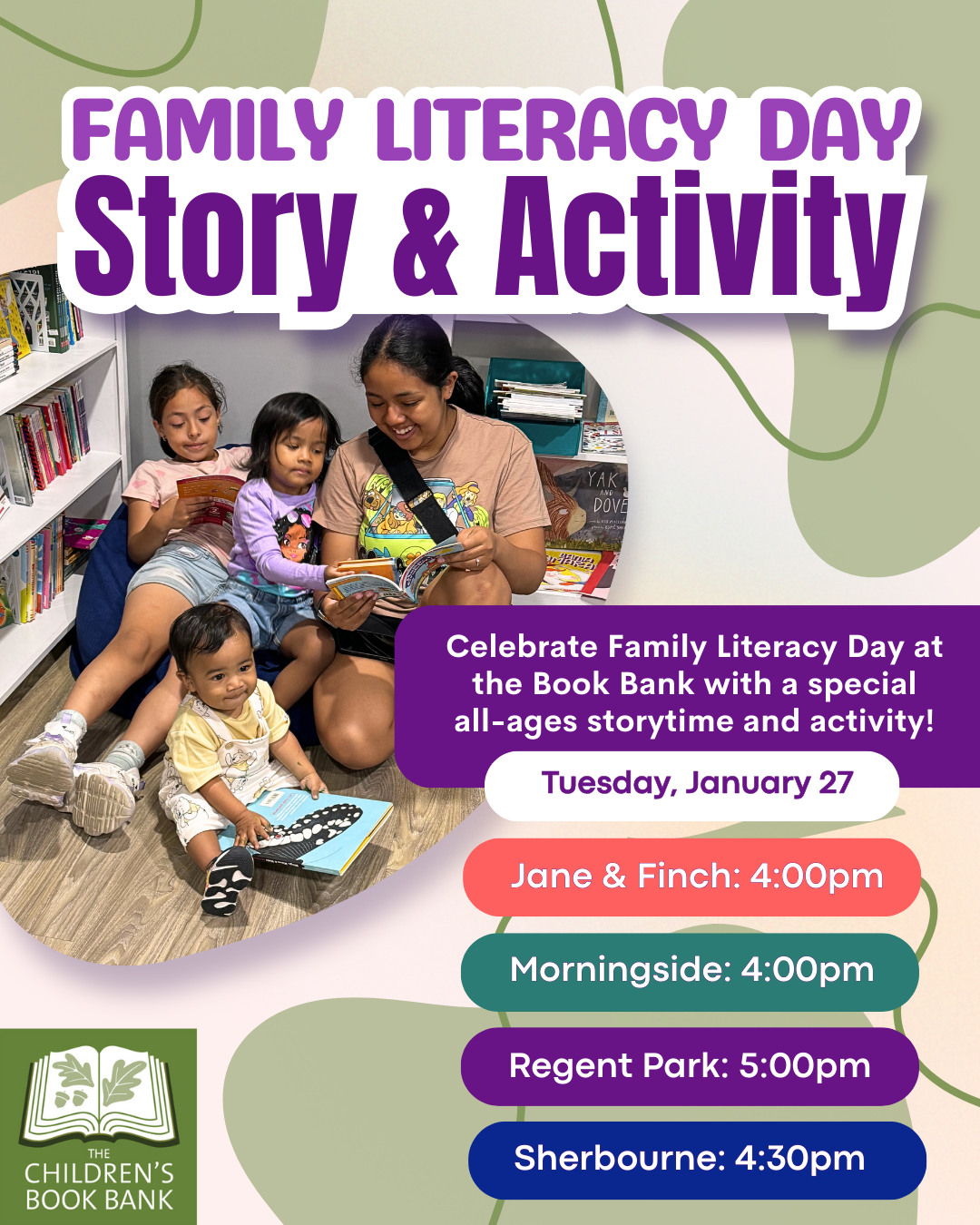 We invite you to celebrate with us today as we host special storytimes and activities at all Book Bank locations!