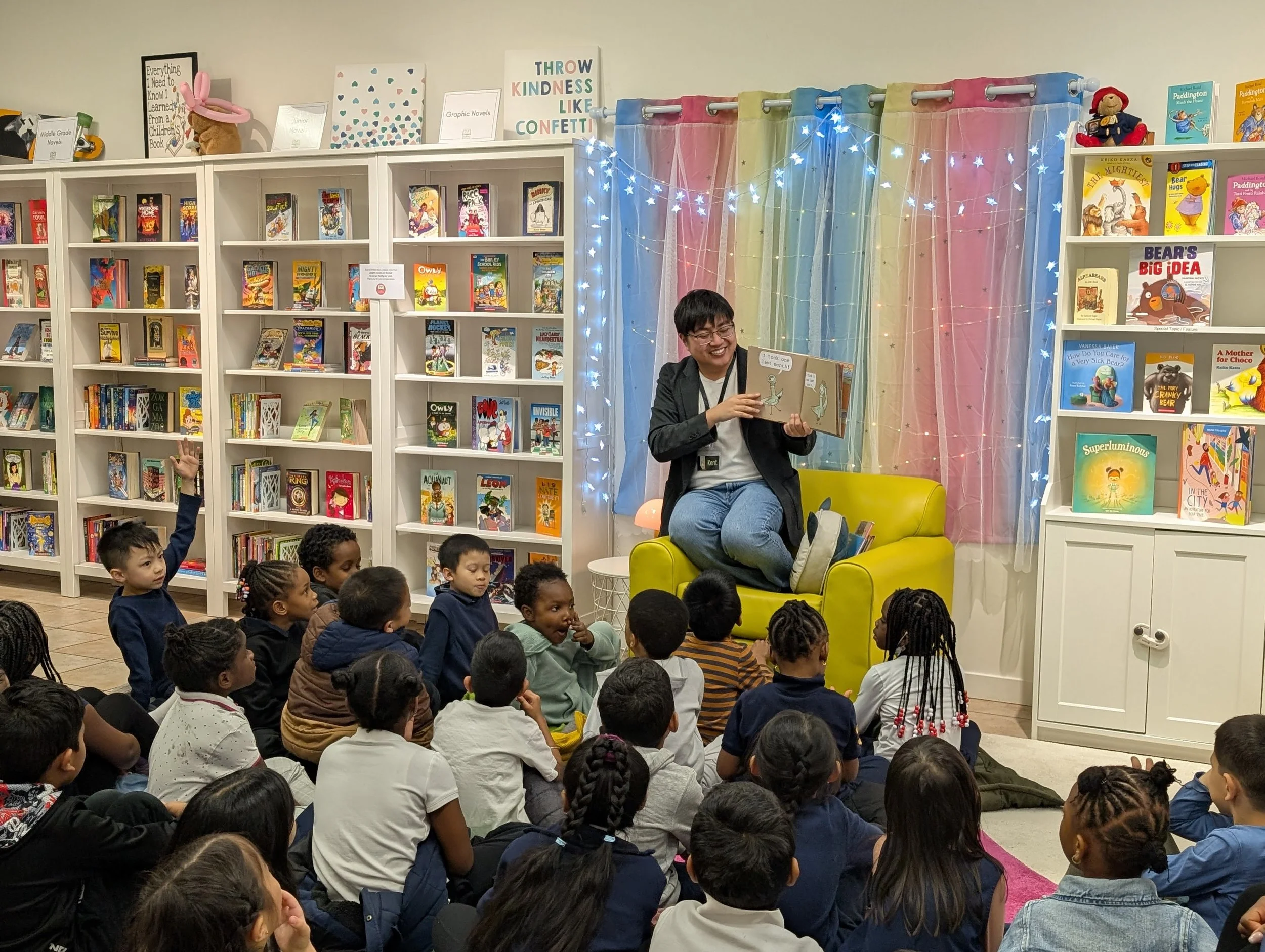 Teachers can choose from one of three set lessons—STEM, Arts, or Language—and may book one of each over the course of the school year. The program ends with time for each participant to choose a book to take home and keep.